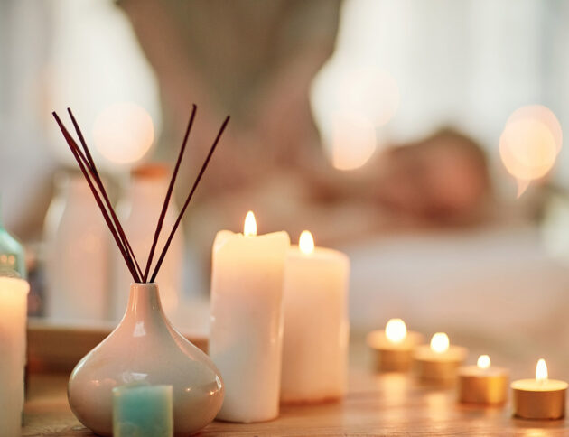Shot of a mature couple enjoying a hot stone treatment A young woman lying in...